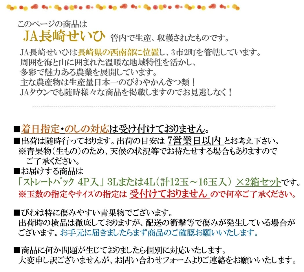 ※天候等により出荷時期は変更となる場合もございます。ご了承ください。