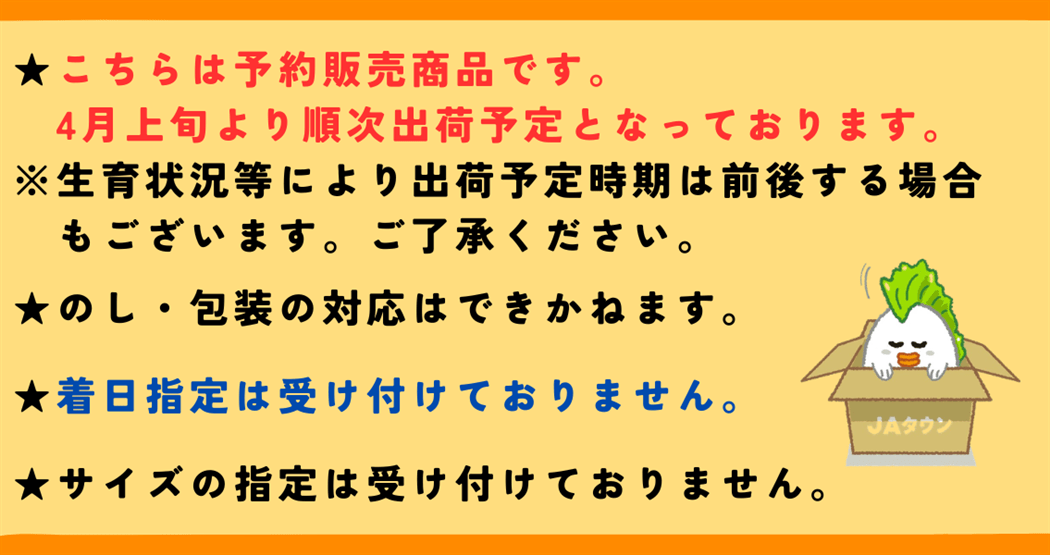 ※青果物のため、生育状況や天候等により出荷開始時期は変更になる場合もございます。ご了承ください。