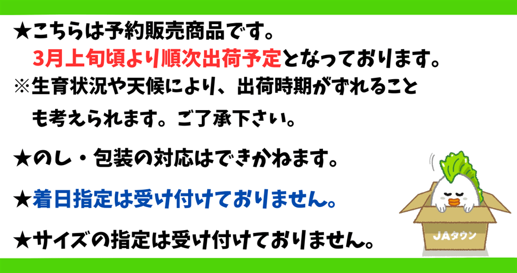 ※青果物のため、生育状況や天候等により出荷開始時期は変更になる場合も考えられます。ご了承ください。