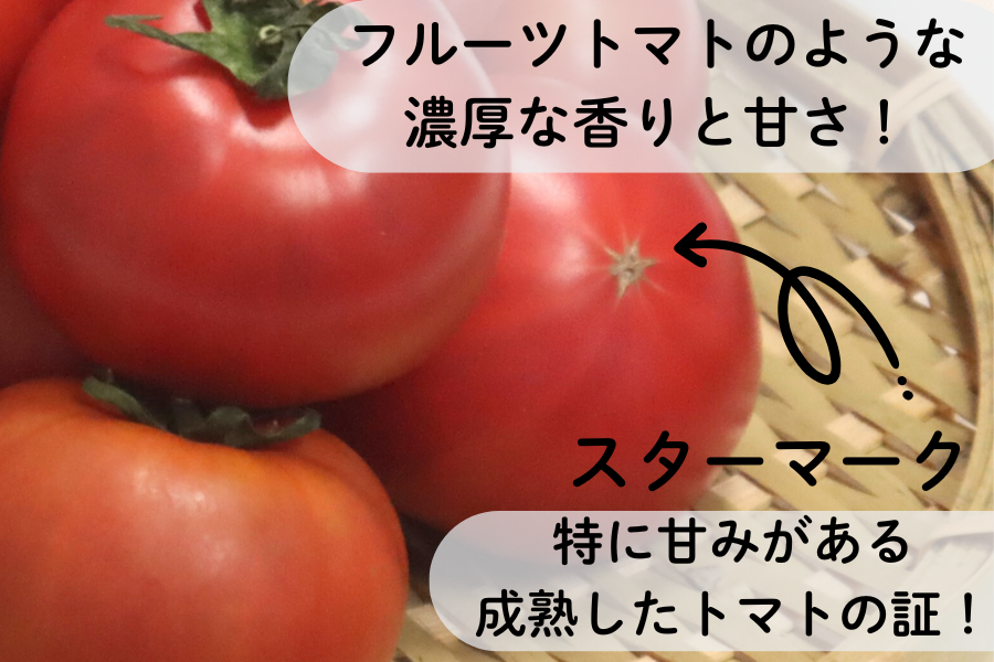 トマトのおしりの部分には甘さを表すくっきりとした「スターマーク」がはっきりと!(※放射線状の線)