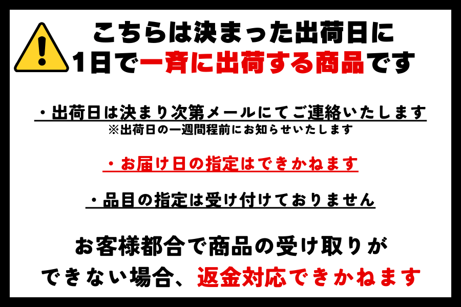 ★ご注文いただきました商品の食味など、お客様個人の主観的な部分にあたるご意見・ご要望・苦情等は保証の対象外となります。