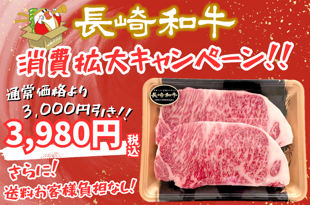 長崎和牛消費拡大キャンペーン!!日本一にも輝いたことのある長崎和牛を特別価格で販売♪さらに!今なら送料お客様負担なし★
