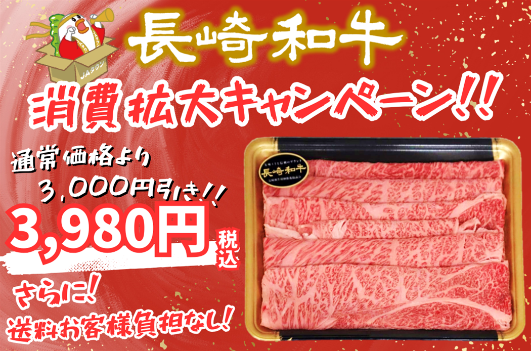 長崎和牛消費拡大キャンペーン!!日本一にも輝いたことのある長崎和牛を特別価格で販売♪さらに!今なら送料お客様負担なし★