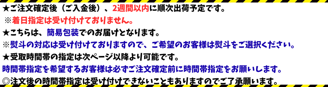 ★ご注文確定後(ご入金後)、2週間以内に順次出荷予定です。 ※着日指定は受け付けておりません。 ★こちらは、簡易包装でお届けいたします。 ※熨斗の対応は受け付けておりますので、ご希望のお客様はご注文時に熨斗をご選択ください。