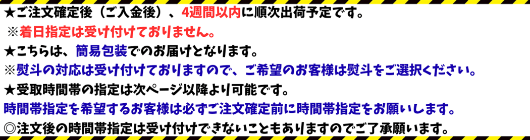 ご注文確定後(ご入金後)、4週間以内に順次出荷予定