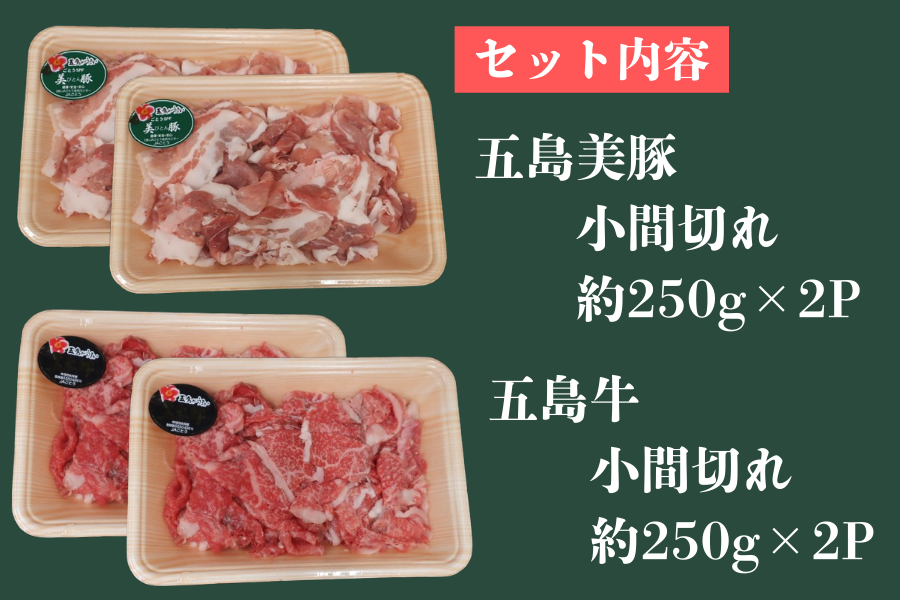 五島牛・五島美豚 小間切れセット 各約500g(各約250g×2P)