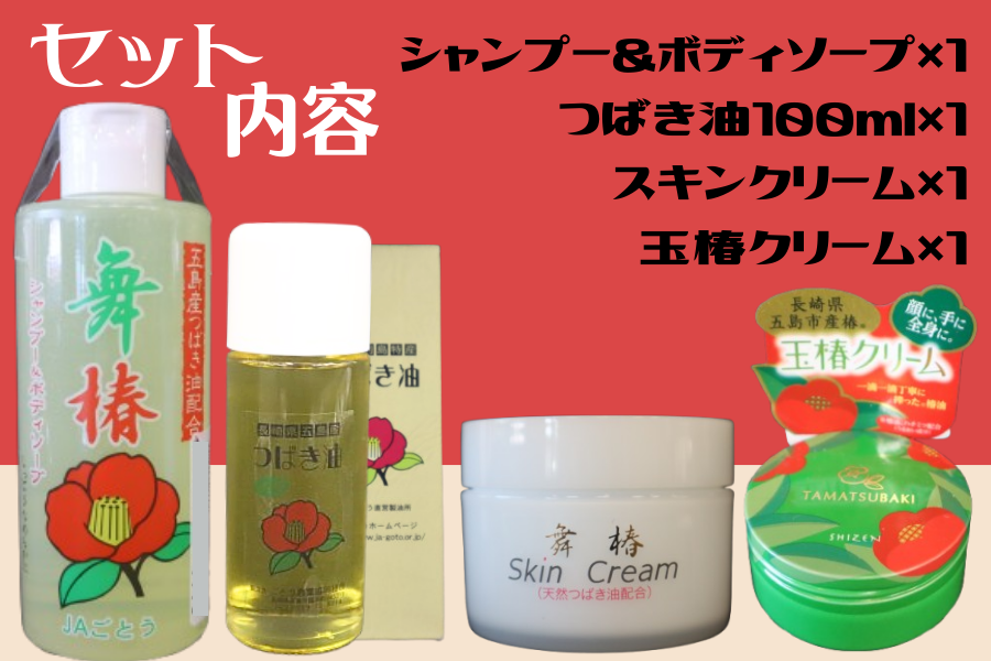 五島産の椿油と、椿油を使ったスキン・ヘアケア製品を詰め込んだセットです!