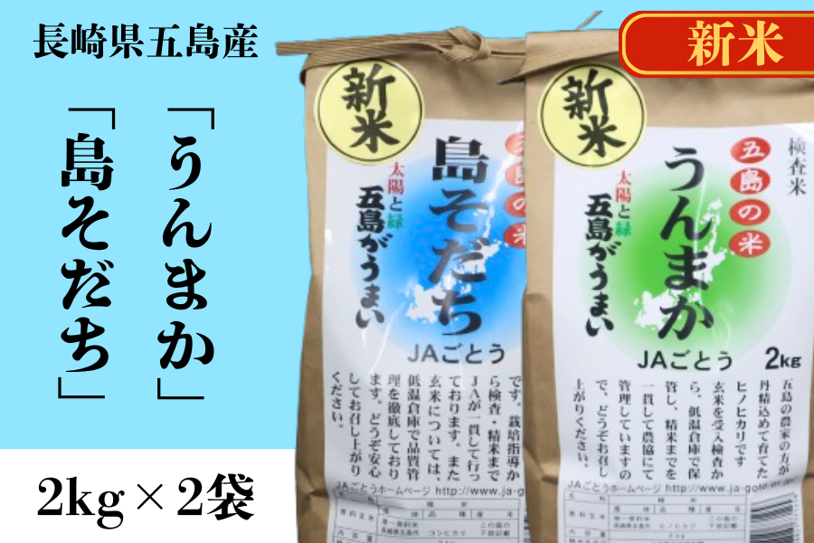 五島育ちの長崎県産米2kg×2種セット!五島の大地の恵みを食べ比べ♪