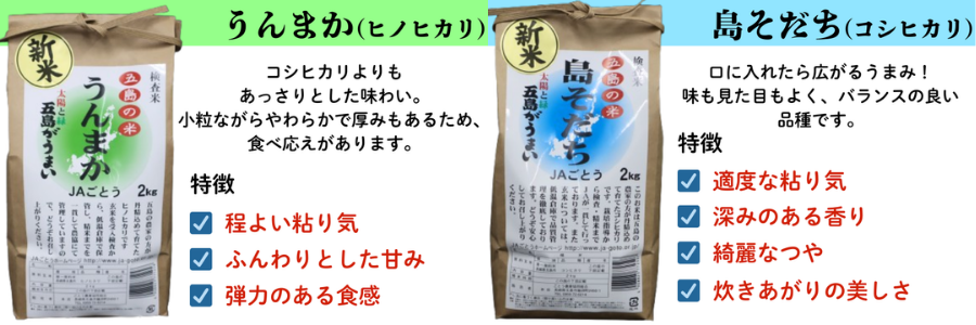 そんな五島列島ですくすく育った新米2種(島そだち・うんまか)の、異なる味わいを楽しめるセットです。