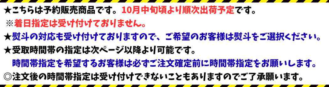 ★ご利用いただける決済方法がコンビニ・ATM・銀行ネット決済のみとなっている商品については、出荷時期の2か月程前になりましたら、クレジット決済を追加いたします。※数量限定の商品につきましては、クレジット決済追加前に在庫切れとなる場合もございます。ご了承ください。