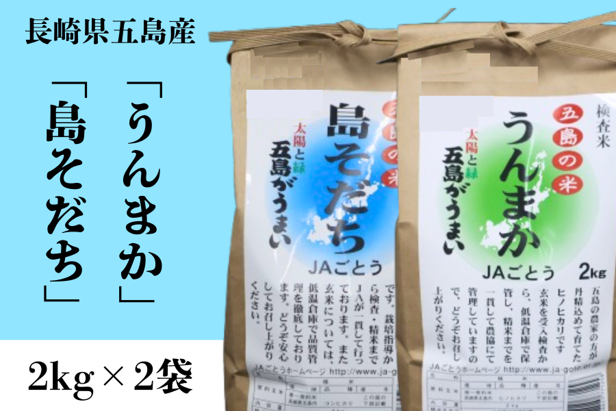 五島育ちの長崎県産米2kg×2種セット!五島の大地の恵みを食べ比べ♪