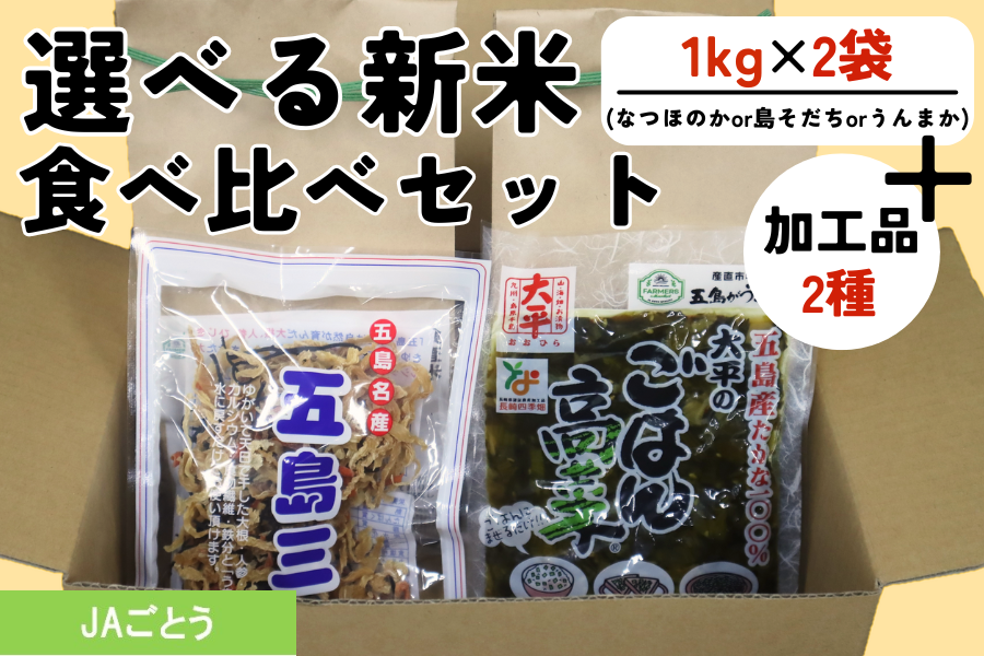 新米1kgを食べ比べできるセットです♪五島のご飯のお供とどうぞ!