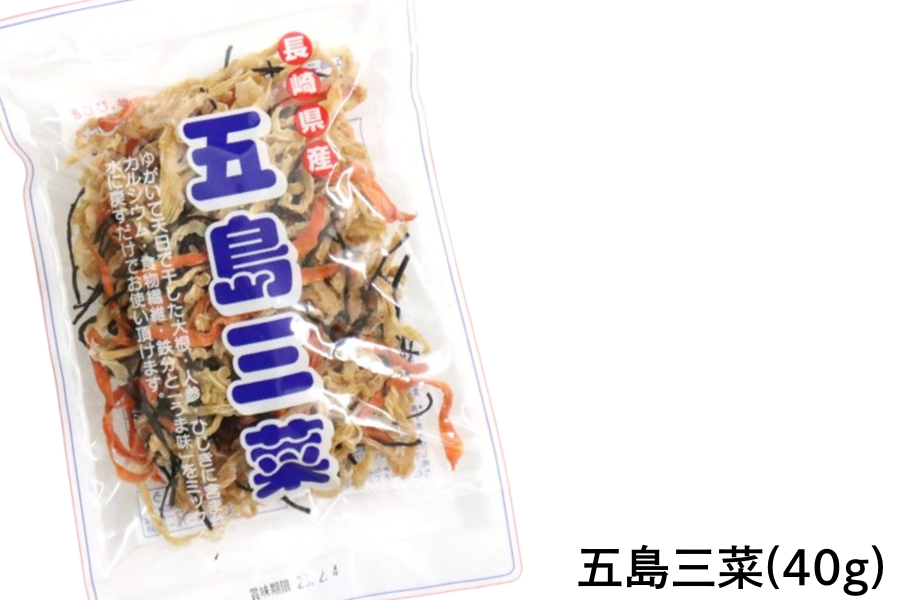 ゆであげた新鮮な大根・人参を、12月〜2月の強い季節風を利用し自然乾燥させ、ひじきを混ぜ合わせています。カルシウム、食物繊維、鉄分とうま味を含んだ、五島に伝わる健康食品です。