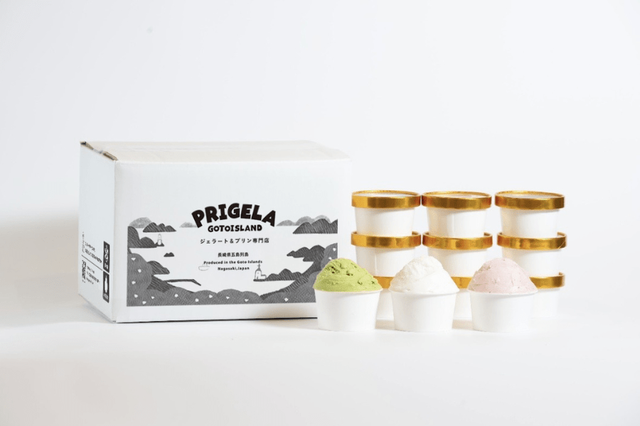 長崎県五島列島の福江島にある、ジェラート・プリンの専門店「PRIGELA(プリジェラ)」のジェラートをお届けいたします。