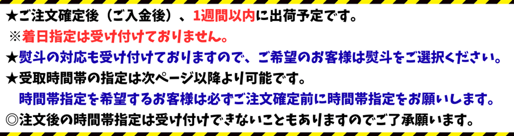 当ショップの商品は全てご注文後【1週間以内の出荷】を基本としております(予約販売や出荷日指定の商品を除く)