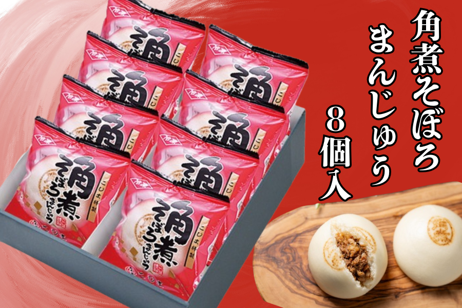 柔らかな甘味が広がる角煮そぼろ肉をまんじゅう生地に包んだ「角煮そぼろまんじゅう」です。何度でも食べたくなる飽きのこない食べやすさが人気の商品です。
