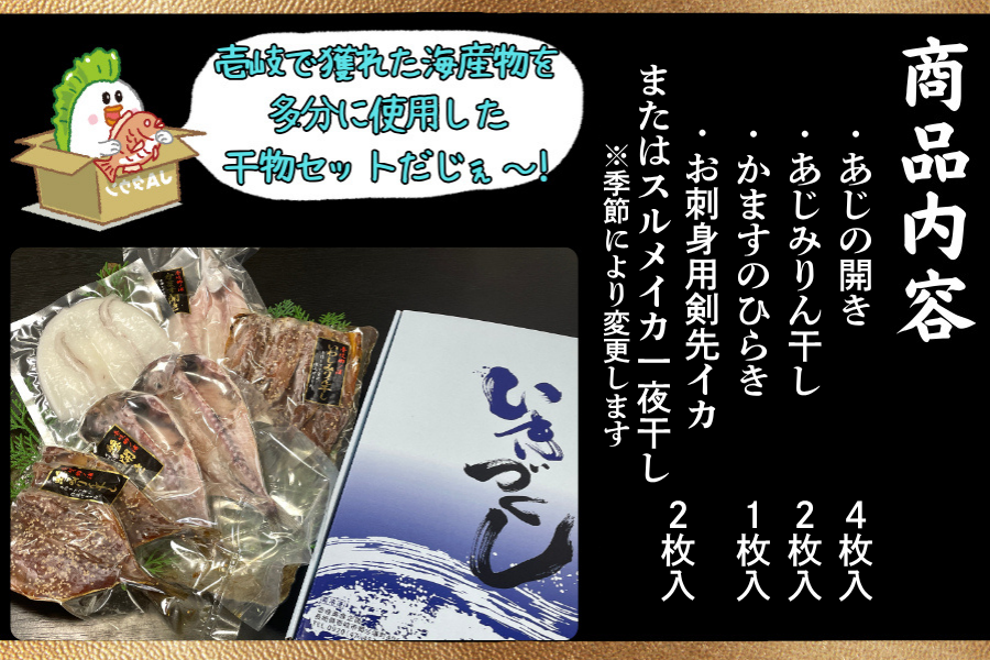 壱岐でとれた海産物を多分に使用した干物セット!!