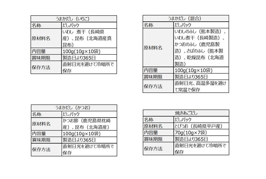 化学調味料、塩、無添加のだしパック4種セットです。出汁が素材の味を引き立てます。野菜・肉・魚等幅広い用途に最適です!使用後は中身を料理に振りかけてもお使いいただけます♪
