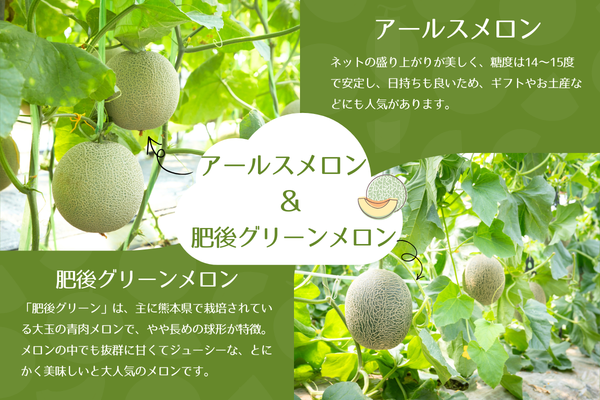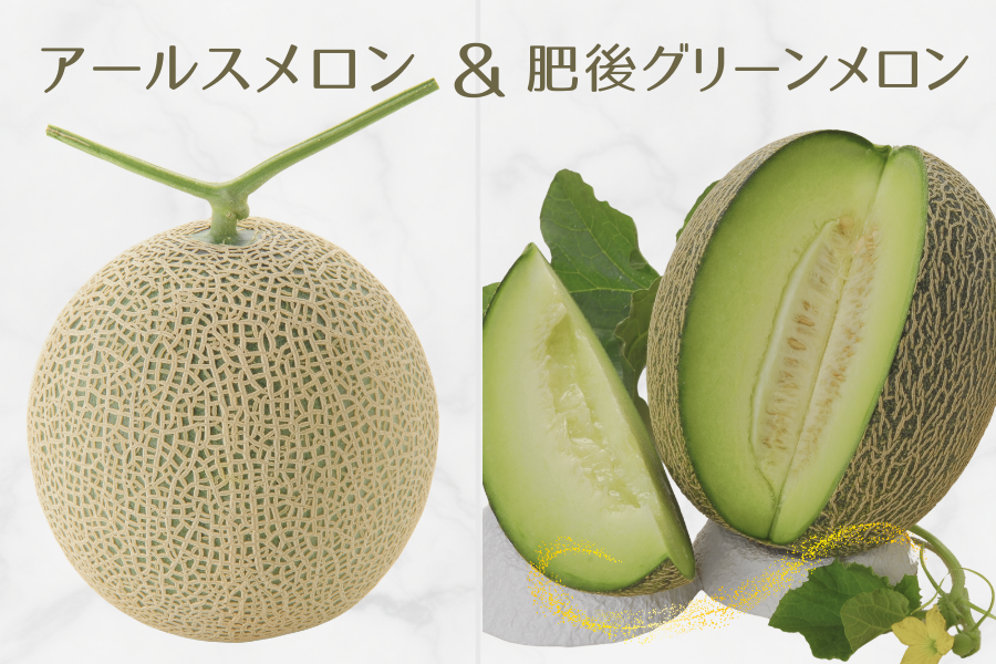 芳醇な香りと上品な甘さを持ち合わせた、メロンの王様「アールスメロン 」と、熊本を代表する高級ブランドメロン「肥後グリーン」今が旬の逸品です。