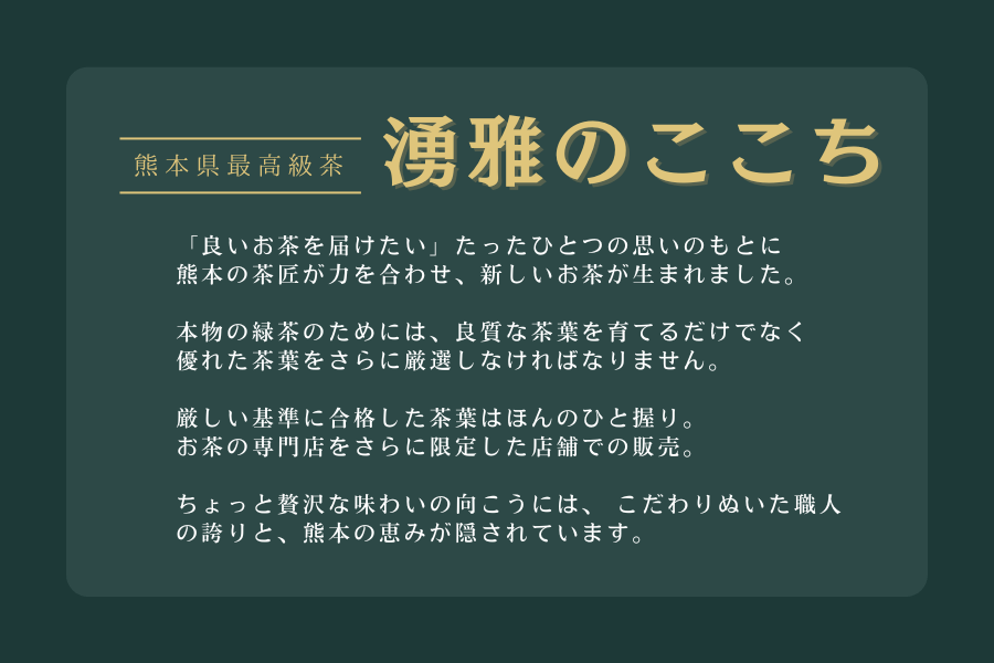 「良いお茶を届けたい。」たったひとつの思いのもとに、熊本の茶匠が力を合わせ、新しいお茶が生まれました。