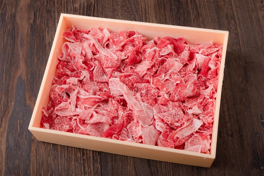 「くまもと黒毛和牛」ブランドのひとつ【あしきた牛】 あしきた牛は、とろけるような肉質と、脂のうま味が特徴です。 生産量が限られているため希少なお肉ですが、一度食べたらファンになること間違いなし! 知る人ぞ知る極上の味わい「あしきた牛」をぜひご賞味ください。 光沢のあるやわらかな肉質の霜降り。 他の素材を引き立てる濃厚な旨味も凝縮されています。 使いやすい切り落とし 500gを冷凍でお届けします。