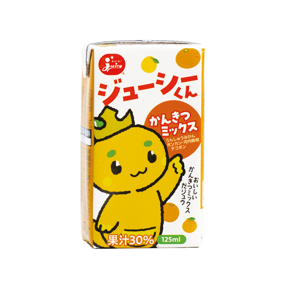 ジューシー ジューシーくんは、4種類の国産果実を贅沢に使用した30%混合果汁入り飲料です。