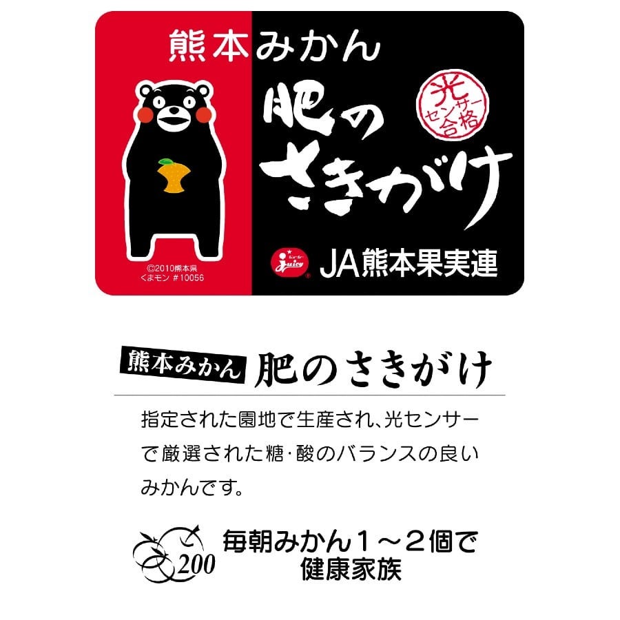 10月に収穫される「こだわり 肥のさきがけ」は厳しい県下統一基準をクリアした(熊本県下統一商品)みかんを厳選。