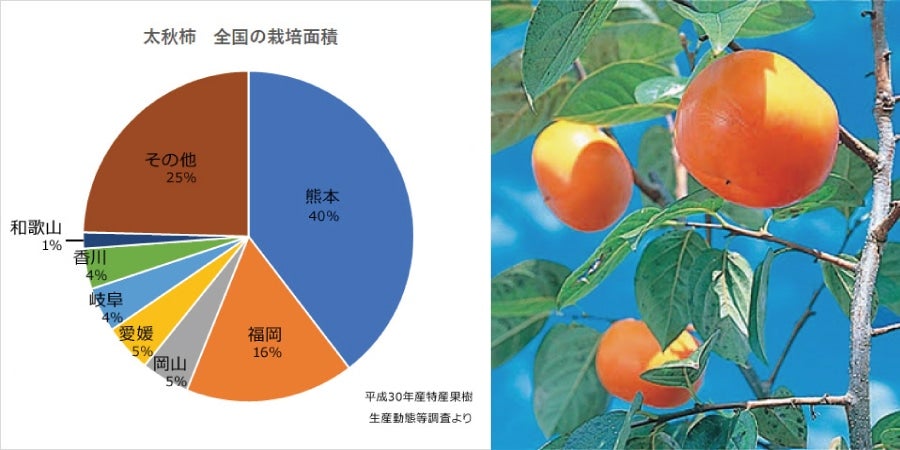 熊本県では、太秋柿の今までの柿にない味、食感を消費者に届けるため、全国に先駆けて栽培をスタートし、全国トップの栽培面積を誇ります。