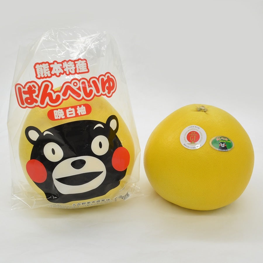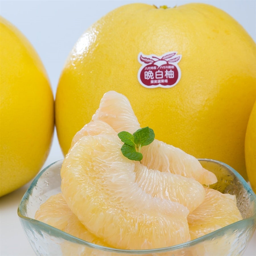 晩白柚のお召し上がり方皮が厚いためナイフ等で切り込みを入れてからむきます。内側の皮も厚いため袋もむいて果実を取り出して食べます。食べきれなかった分はラップでしっかり包んで冷蔵庫に入れ、早めにお召し上がりください。外の皮と果実の間の白い部分は砂糖漬けにするとおいしいです。晩白柚の保存方法直射日光や暖房をさけ、風通しのよい涼しい場所で保存します。日持ちがよく1カ月くらいは持ちますが、早めにお召し上がりください。【晩白柚漬けの作り方】晩白柚の白い部分100gを熱湯につけてふたをして5分待ち、よくもんで水洗いをする。これを3回繰り返し、しぼって水気を切る。鍋に水1カップと砂糖250gを入れ、火にかける。砂糖が溶けたら(1)を重ならないようにいれ、強火で煮る。沸騰したら弱火にして、全体が透き通るまでひっくり返しながら煮る。水が足りないときは適宜足す。(2)を皿にとり冷まし、全体にグラニュー糖をまぶす。熊本の自慢のフルーツ温暖な気候と、山あり海ありの複雑な地形、阿蘇の伏流水…と農業に適した自然環境と気候に恵まれた熊本。果物の生産もさかんで、温州みかんやデコポン、晩白柚、甘夏、クリなど全国上位の生産量を占めています。JA熊本果実連では、会員JA、部会と連携しながら品質の高い果物をご紹介しています。健康のために、「毎日くだもの200g」日本人の1人あたりの果物消費量は、1日100グラム程度。欧米に比べると約半分と少なく、特に若い人たちの間で減少しています。果物には豊富なビタミンやミネラル、食物繊維などが含まれており、バランスのよい食生活には欠かせません。健康のために毎日200gの果物摂取を目指しましょう!200gは温州みかんなら2個程度です。