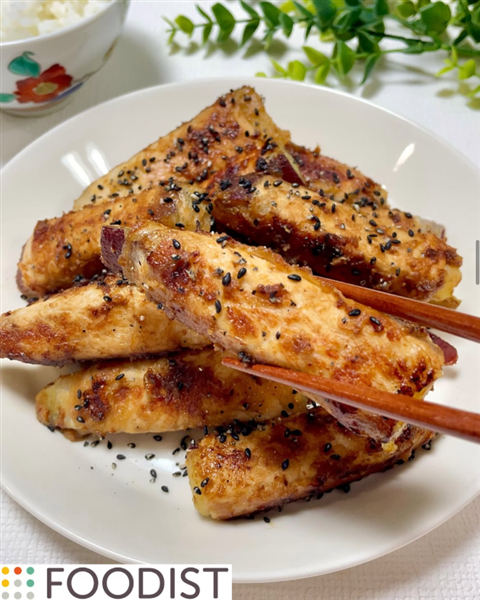 生姜が効いたお味噌の甘いタレと 甘くホクホクしたさつまいも甘太くんを巻き付けた豚肉巻き!