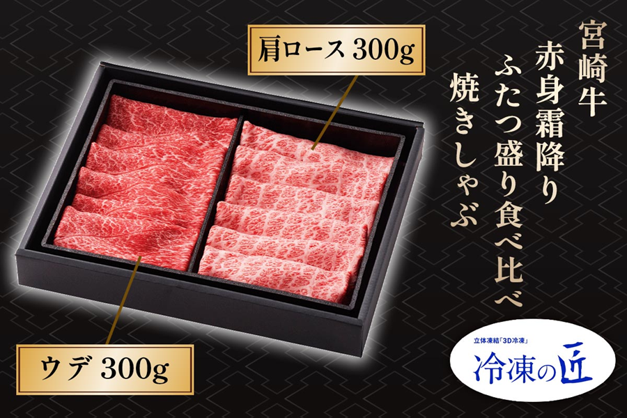[冷凍の匠] 宮崎牛 赤身霜降りふたつ盛り食べ比べ焼きしゃぶ