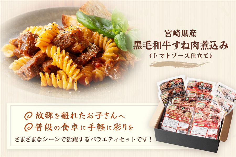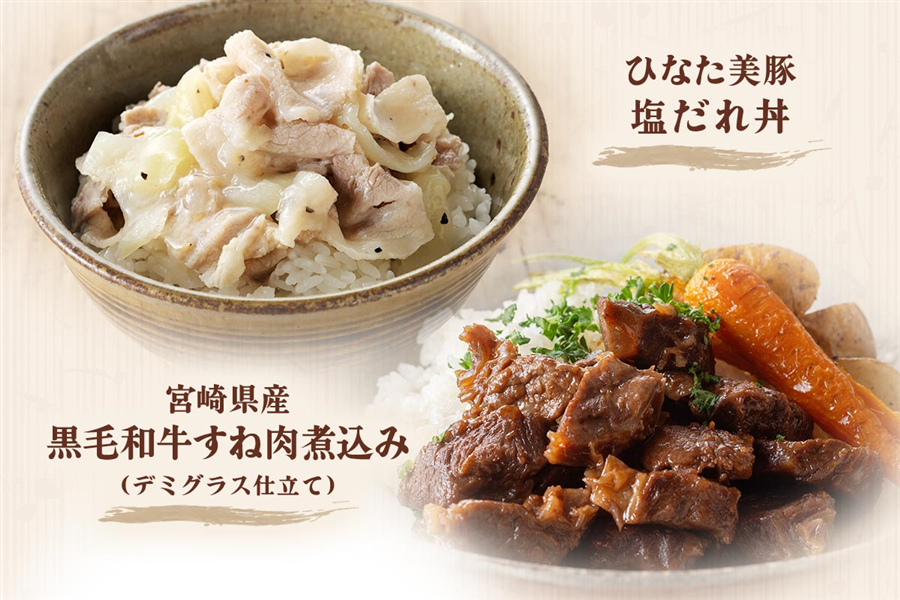 電子レンジで簡単調理。黒毛和牛丼やすね肉煮込みなど、ご飯がすすむ詰め合わせです