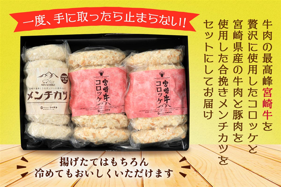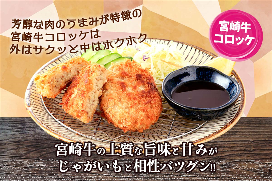 宮崎県が誇る「宮崎牛」を贅沢に使用したコロッケと、宮崎県産の牛肉と豚肉を使用した合挽きメンチカツのセット