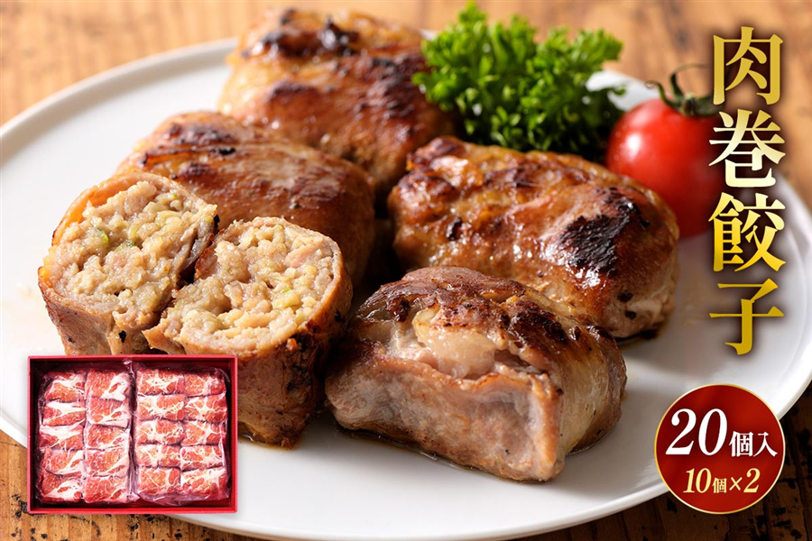 〇肉巻餃子 宮崎ブランドポークの肩ロースを使用し、生地にトンコツスープを練りこんだジューシーで肉の旨みを堪能できる餃子です。 肉屋だからできた新感覚の餃子で、子供から大人まで大人気の商品です。 衛生環境の整った施設にて生産者の想いを胸に感謝の気持ちを持ち続け、5つの食品安全方針 @【顧客満足に努める】 A【食の安全・安心に努める】 B【食品安全システムの構築に努める】 C【地域社会への貢献に努める】 D【環境保全に努める】 をかかげ、お客様へ商品をお届けしています。 ○商品名:肉巻餃子20個入り ○内容量:肉巻餃子10個入×2袋 ○賞味期限:冷凍90日 ○保存方法:冷凍 ○原産地:国産 ○アレルギー:豚肉・牛肉・鶏肉・乳成分・小麦・大豆・ごま・ゼラチン ○発送:専用化粧箱に入れてお届け
