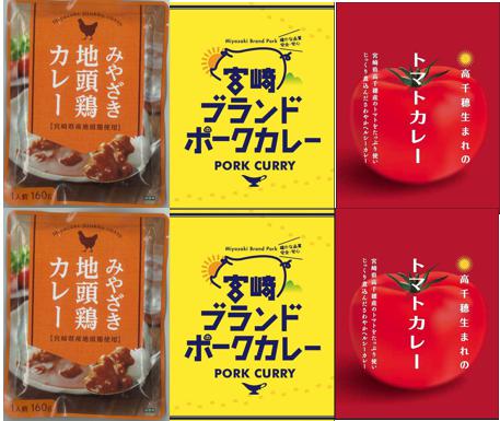 人気の地頭鶏カレー、ポークカレー、トマトカレーをセットにしました。