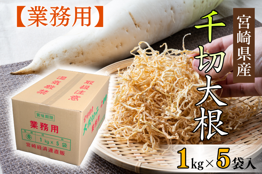 宮崎県産の千切大根が、【業務用】として登場!! 大容量1s×5袋入りのお得な商品となっております。 水戻ししてシャキシャキ!煮つけやサラダに! ★水戻し方法★ @千切大根を水でさっと洗い、10分ほど水に漬けます。 A水から上げ、軽く絞って水気をとってからお使いください。