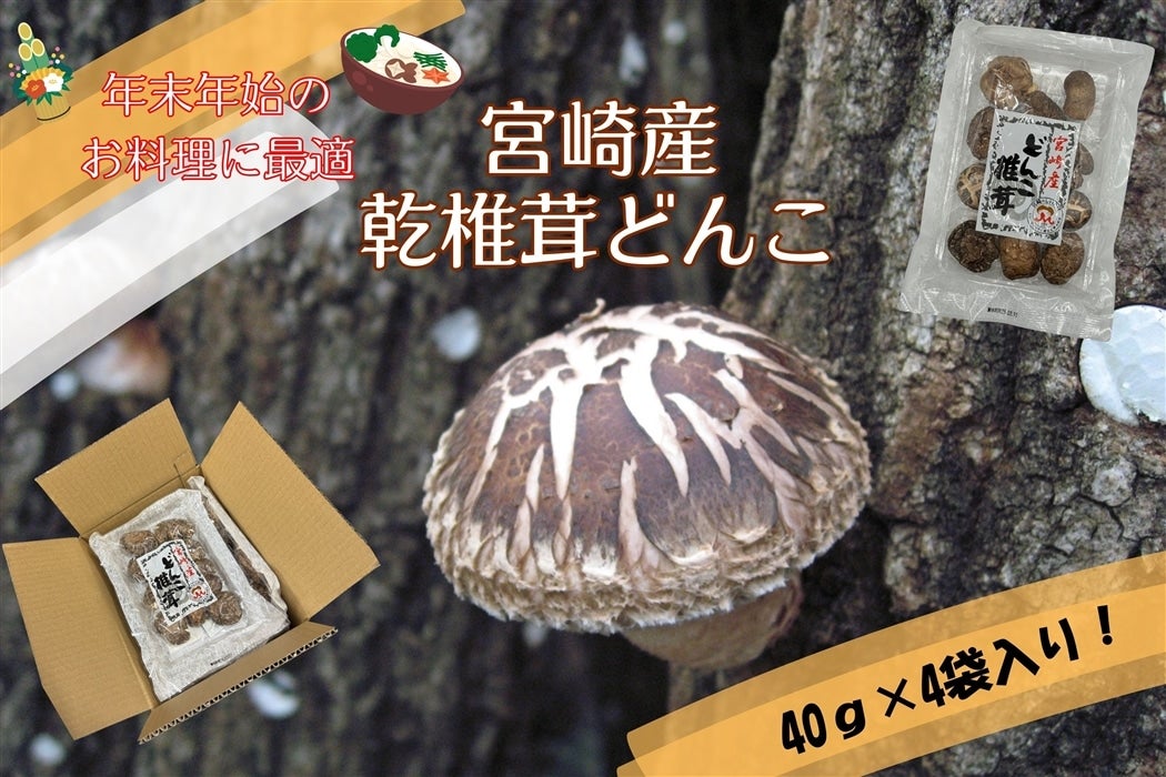 【年末年始のお料理に】宮崎産どんこ椎茸40g×4袋入