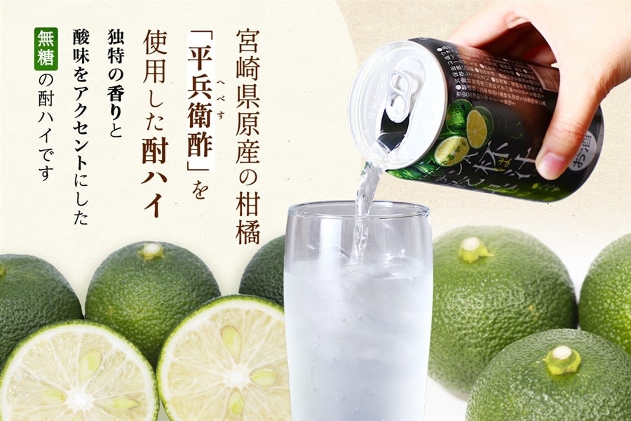 宮崎県産の柑橘「平兵衛酢(へべす)」を使用した無糖酎ハイです