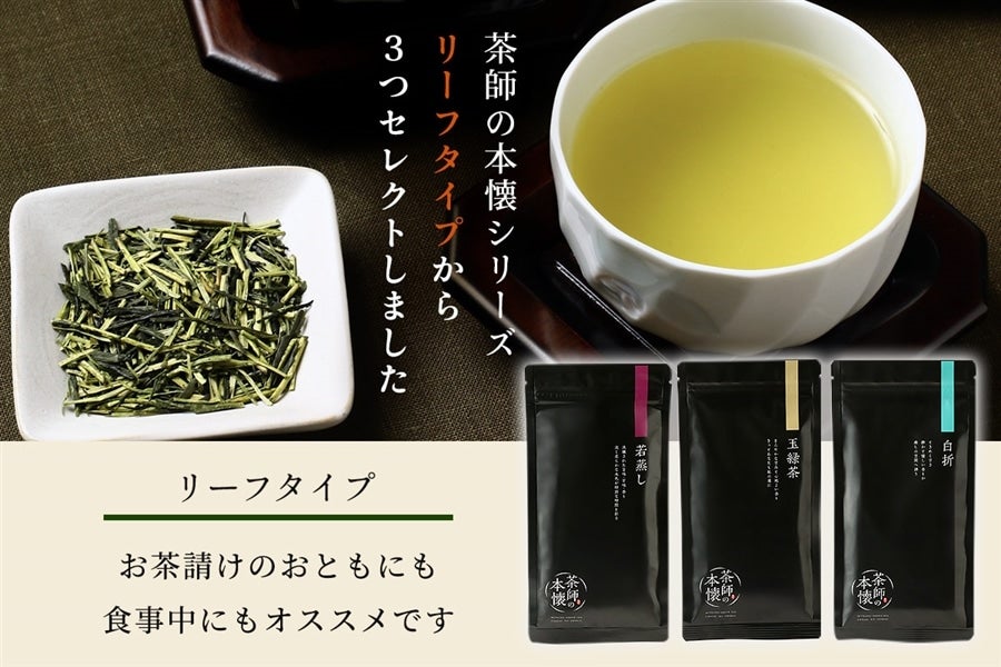 茶師の本懐シリーズのリーフタイプ商品を3つセレクトしました。