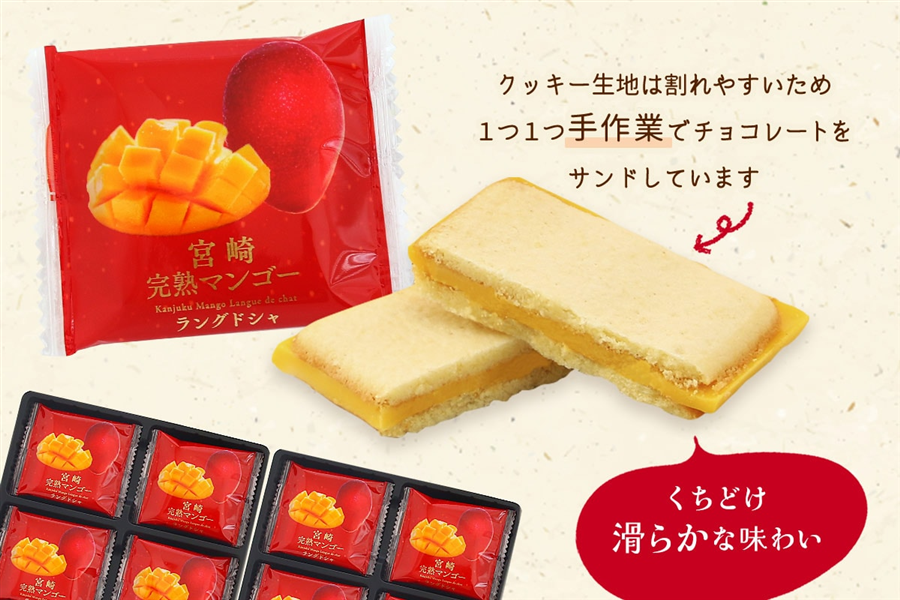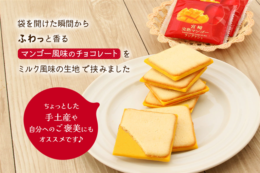 専用手提げ袋付き!宮崎県産の完熟マンゴーを使用したラングドシャ