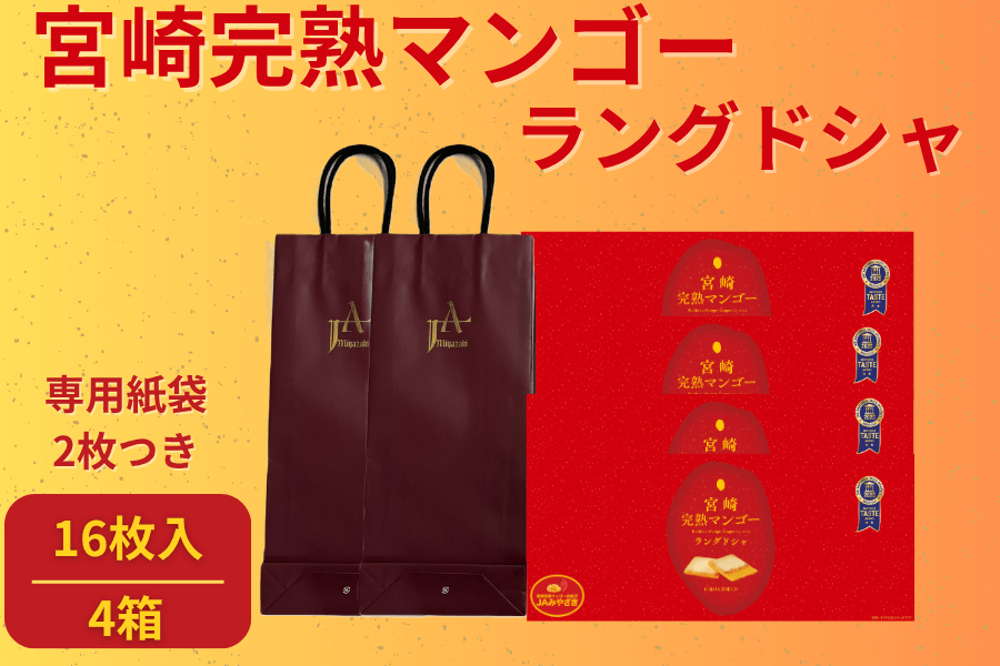 【手提げ袋付】宮崎完熟マンゴーラングドシャ 16袋入×4箱