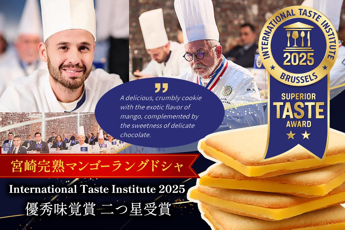 宮崎県産の完熟マンゴーパウダーと宮崎県産の牛乳を使用したラングドシャです。