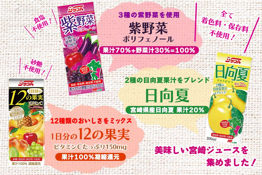 宮崎の美味しいジュース3種類を詰め合わせたギフトセット