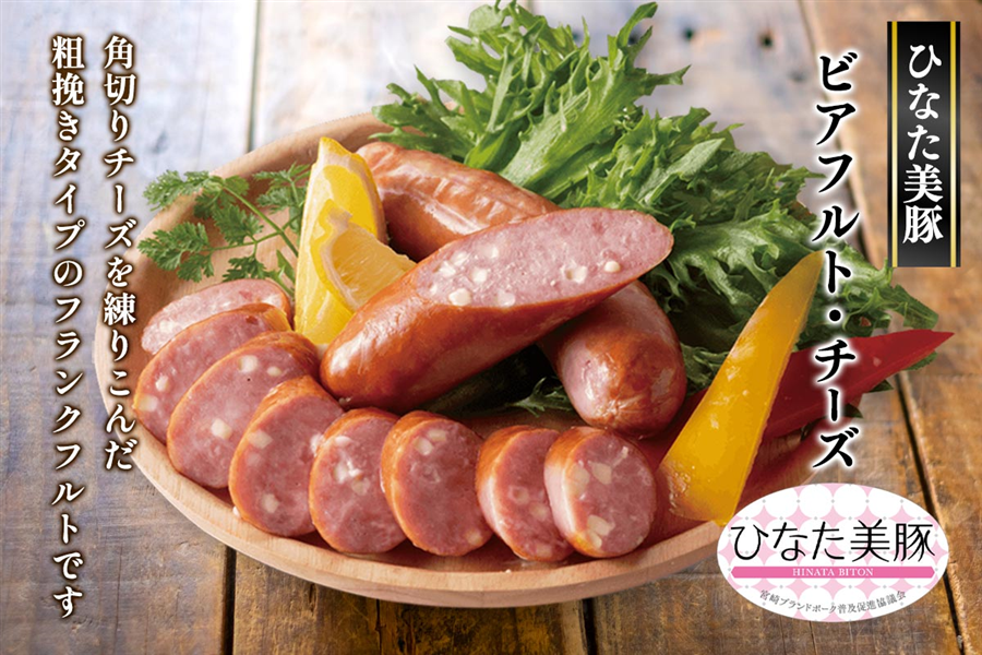◆農村協働工舎 ミヤチクのハム・ソーセージの最高級ブランドである農村協働工舎は、宮崎ブランドポークだけにこだわった商品です。また、保存料や着色料を使わない、余分なものを加えないという「引き算のものつくり」から生まれます。ハムやベーコンの断面にしっかりとお肉の繊維が見えるのは余計な水分を加えていない証です。こうした「引き算のものつくり」を行うことで宮崎ブランドポークの美味しさがハムやソーセージに活かされます。 衛生環境の整った施設にて生産者の想いを胸に感謝の気持ちを持ち続け、5つの食品安全方針 @【顧客満足に努める】 A【食の安全・安心に努める】 B【食品安全システムの構築に努める】 C【地域社会への貢献に努める】 D【環境保全に努める】 をかかげ、お客様へ商品をお届けしています。 ○商品名:T-907 ビアフルト・チーズ ○内容量:ビアフルト・チーズ90g×4パック ○賞味期限:商品到着後、14日以上 ○保存方法:冷蔵 ○原産地:宮崎県産 ○アレルギー:乳成分・豚肉