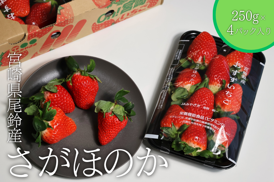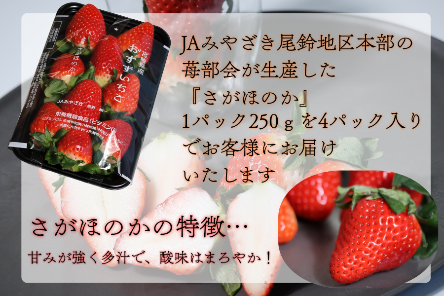 JAみやざき尾鈴地区本部の苺部会が生産した『さがほのか』を4パックセットにしました!