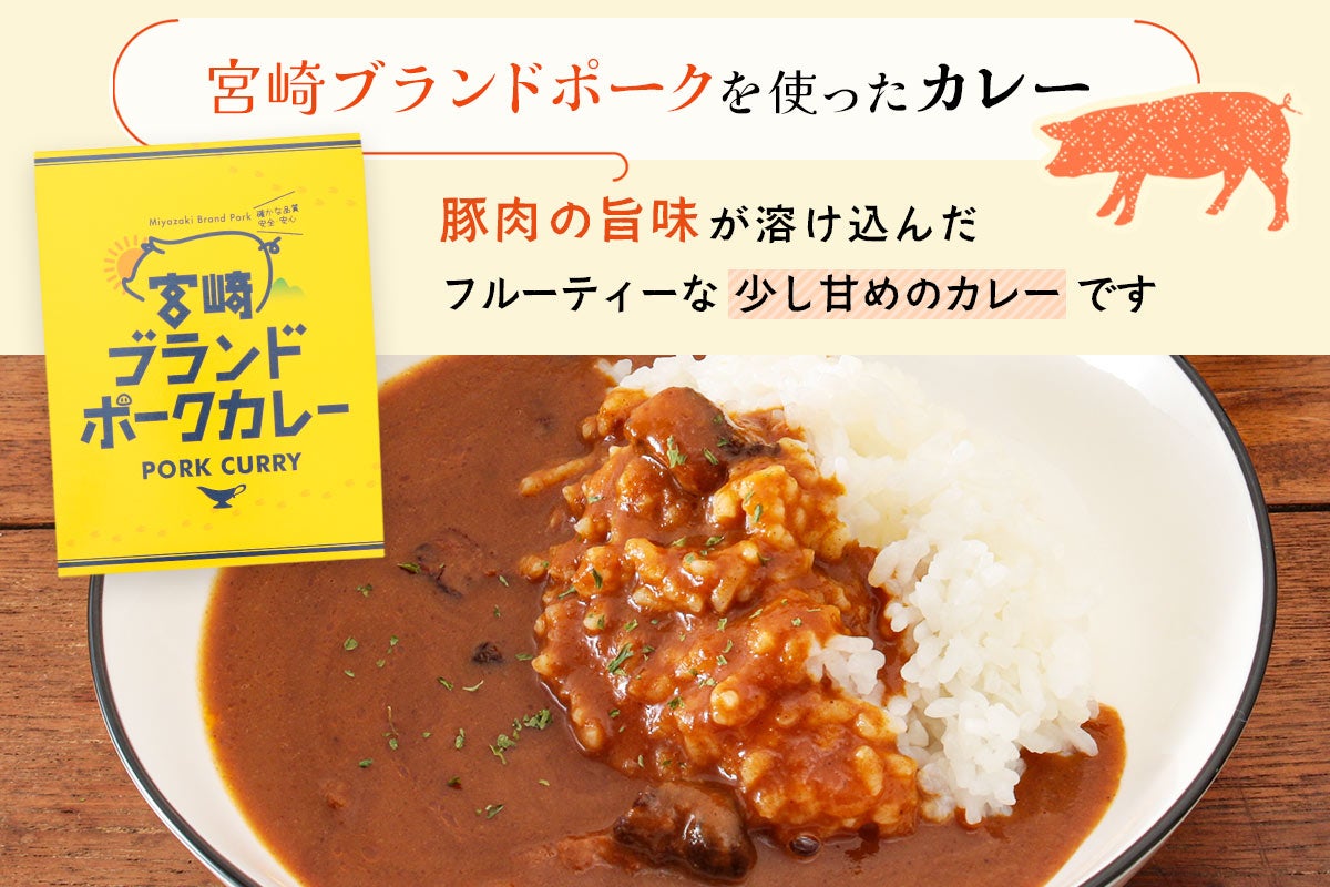 宮崎ブランドポークカレーは、豚肉の中でも旨みが豊富で、味わい深いといわれるウデ肉を使用しました。