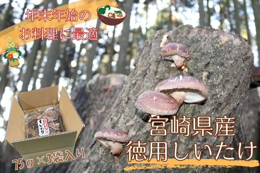 【年末年始のお料理に】宮崎県産徳用しいたけ75g×3袋