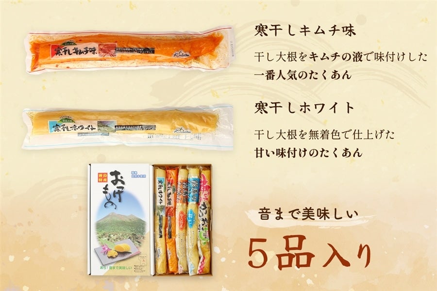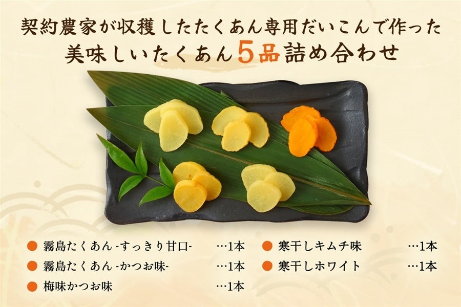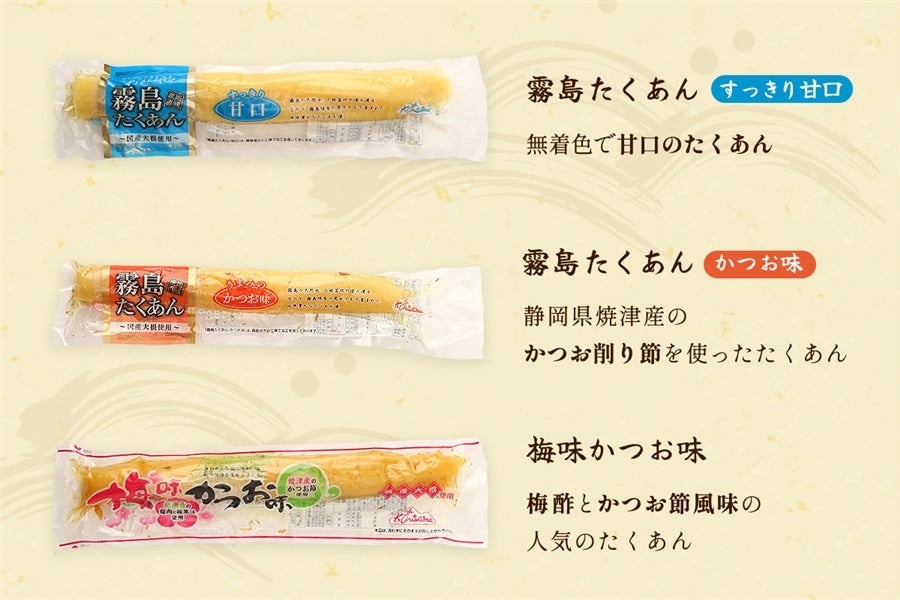 昔ながらの沢庵から、梅味、キムチ味の商品まで、バラエティに詰合せました。