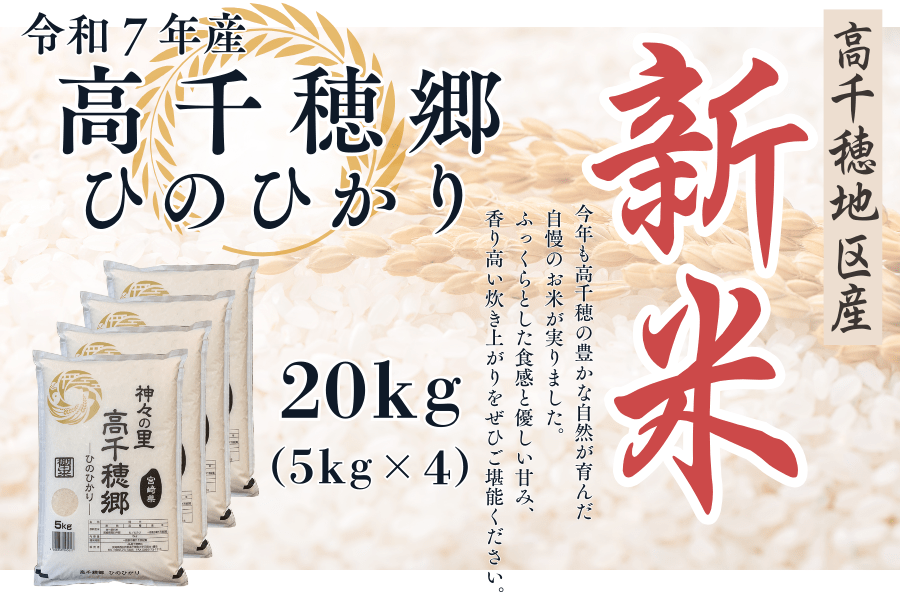 【新米】令和7年産 高千穂郷ヒノヒカリ 20kg