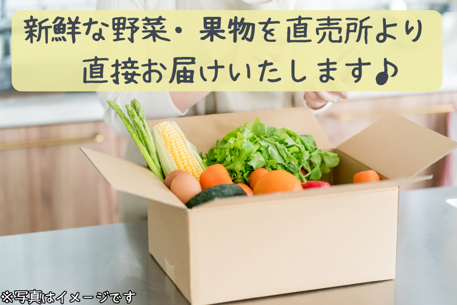 「おいどん市場」与次郎館で人気の季節のお野菜&果物の中から、スタッフがおすすめする12〜15品目をセレクトした、ボリュームも栄養もたっぷりなセットです。